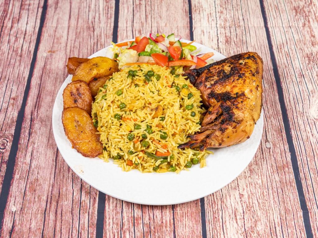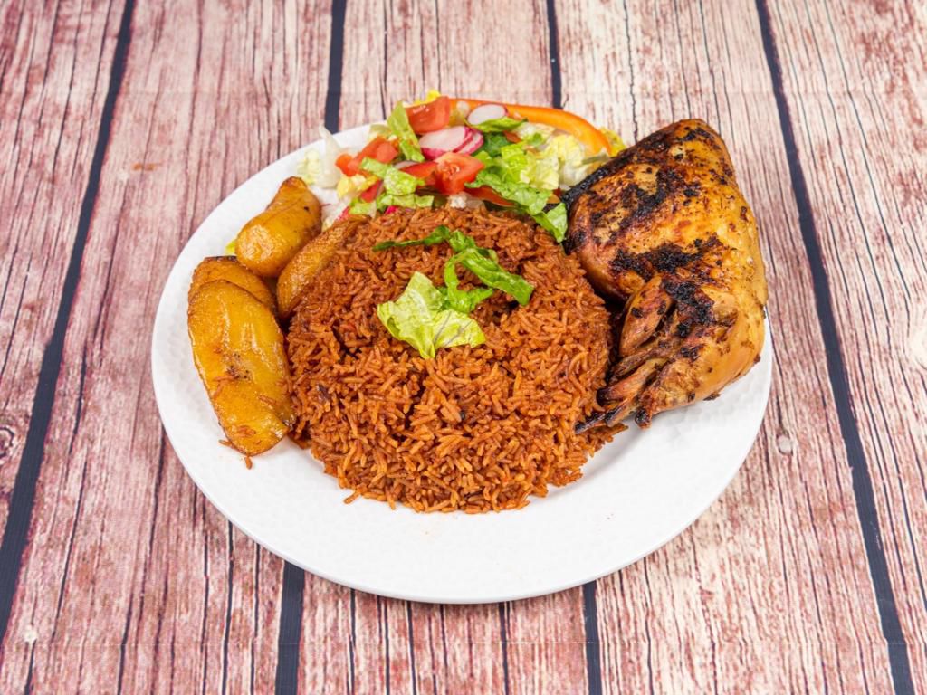The jollof rice was delicious and the grilled chicken was juicy. Loved the crispy plantains too. Great taste and good service.